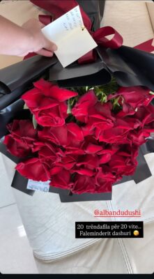 Moderatorja e njohur e “Ftesë në 5”, Bieta Sulo, ka ndarë me ndjekësit një moment shumë të veçantë nga jeta e saj private. Në Instagram, ajo publikoi një foto ku shfaqej një buqetë elegante me trëndafila të kuq, të shoqëruar me mbishkrimin plot domethënie: “20 trëndafila për 20 vite dashuri.”