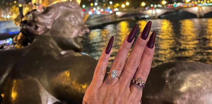 “PO. Nuk mund të ishim më të lumtur”, ka shkruar aktorja krahas një fotoje të çiftit të lumtur në Paris dhe një foto të unazës së diamantit.