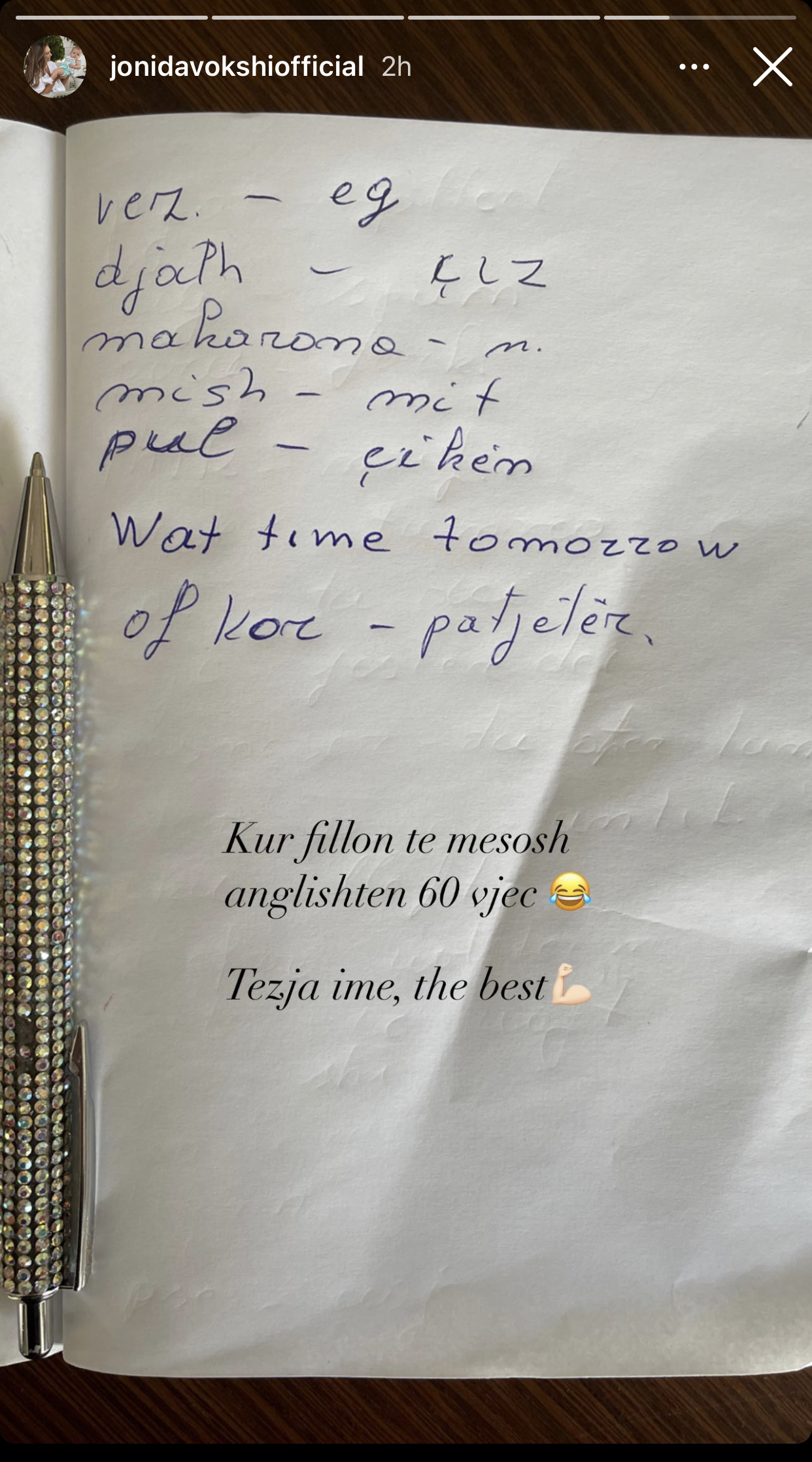 “Kur fillon të mësosh anglishten 60- vjeç. Tezja ime më e mira”, ka shkruar Jonida, krah postimit që nuk ka nevojë për më shumë koment. Fotoja dhe dëshira flasin vetë!/revistawho.com