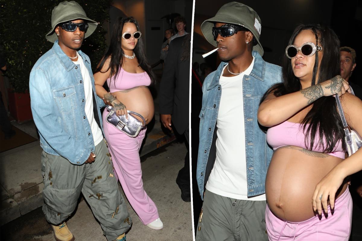 Rihanna tregoi barkun e saj shtatzënë me një veshje tërësisht rozë për një mbrëmje takimi me A$AP Rocky.