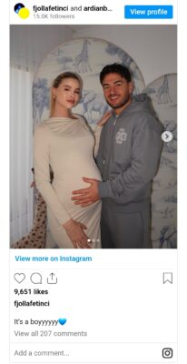 Një kapitull i ri dhe plot emocion po hapet në jetën e këngëtarit Ardian Bujupi dhe bashkëshortes së tij Fjolla Fetinci. Çifti, i cili pak kohë më parë ndau me publikun lajmin se po bëhen prindër për herë të parë, ka zbuluar tashmë edhe një tjetër detaj të shumëpritur: gjininë e bebit që po vjen në jetë. Në një fotografi të publikuar në rrjetet sociale, Fjolla shfaqet pranë Ardianit me barkun e rrumbullakosur, ndërsa lajmi konfirmohet me një fjali të thjeshtë, por plot emocion: “Është djalë”.