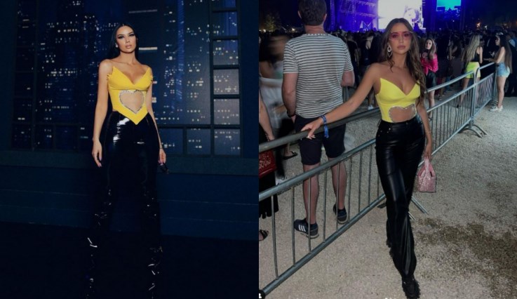 Ndodh shpesh që vajzat e ekranit t’i shohim me të njëjtën veshje e këtë rradhë kanë qenë Bora Zemani dhe Kiara Tito që kanë bërë xing. Kiara u shfaq së fundmi në Sunny Hill Festival e veshur me një bluzë të verdhë, të hapur në formë zemre në pjesën e barkut, me gura rreth e qark dhe me një cep në pjesën para. Të njëjtën ja kemi parë muaj më parë gjatë “Përputhen” edhe Bora Zemanit. Të dyja moderatoret e kanë kombinuar bluzën me pantallona lëkure të zeza. Vetëm se rastet për të cilat kanë zgjedhur këtë veshje kanë qenë të ndryshme, njëra për festival e tjera për ekran. Cilës mendoni se i shkon më shumë?