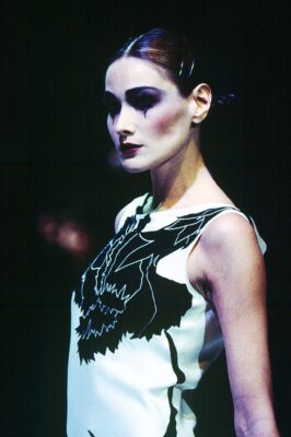 Ish-supermodelja dhe ish-Zonja e Parë e Francës u shfaq me një fustan elegant bardh e zi nga koleksioni i Galliano-s për vjeshtën e vitit 1995. Ajo e plotësoi veshjen me doreza prej kadifeje dhe bizhuteri vezulluese të Chopard, duke i dhënë një prekje moderne kësaj vepre arkivore.