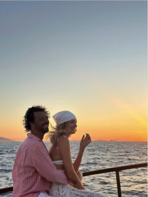 Në imazhin e ndarë në rrjete sociale, Ferragni shfaqet duke përqafuar trashëgimtarin e Pirelli-t mbi një jaht, teksa pas tyre shtrihet një perëndim romantik dielli mbi det.
