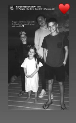 Në një postim, që shumë e lexuan si një dritare shprese mes tensioneve të raportuara, motra e Brooklyn Beckham, Harper Beckham, i kushtoi atij një dedikim publik për Shën Valentin. Në një foto familjare ku shfaqen edhe vëllezërit Romeo dhe Cruz, Harper shkroi: “Ju dua të gjithëve aq shumë sa fjalët nuk mund ta përshkruajnë”, duke i bërë tag vëllezërve të saj të mëdhenj.