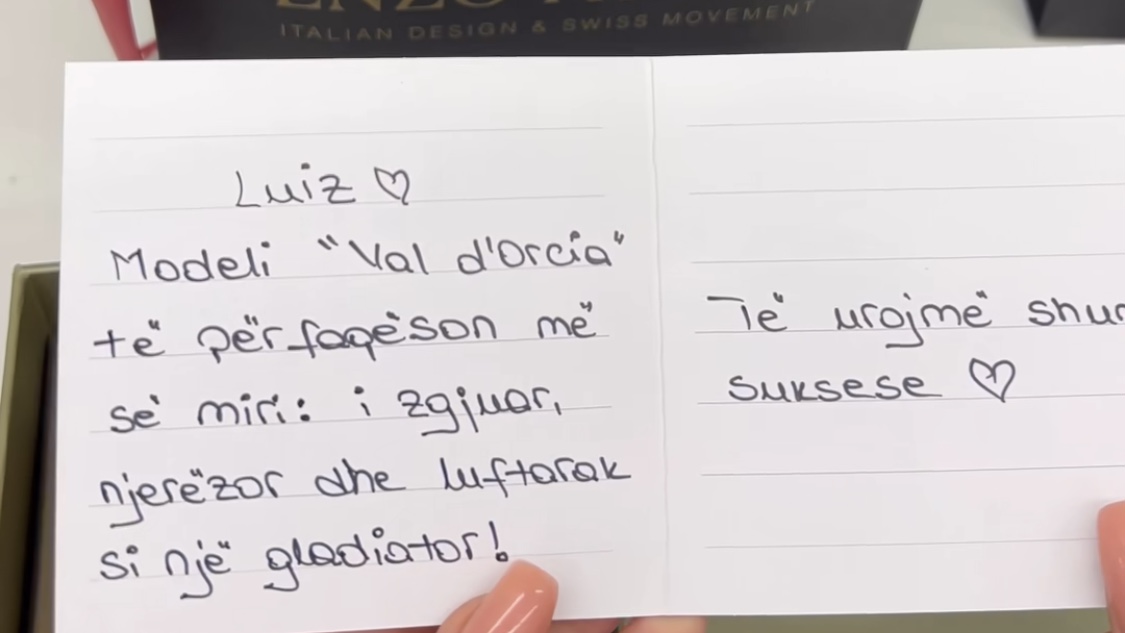 Luiz Ejlli –> I është dhuruar modeli i orës “ Val d’Orcia” ( i personalizuar me gdhendjen e emrin e tij ) si dhe byzylyk po ashtu i personalizuar me emrin e tij.
