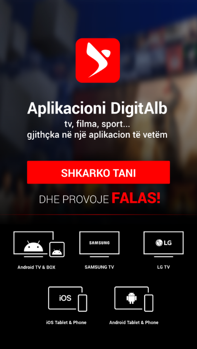 Shkarkoni tani aplikacionin në çdo pajisje smart. Hyni në faqen zyrtare DigitAlb.al për tu regjistruar e për ta provuarkëtë eksperiencë FALAS. Klikokëtu: https://www.digitalb.al/ott/