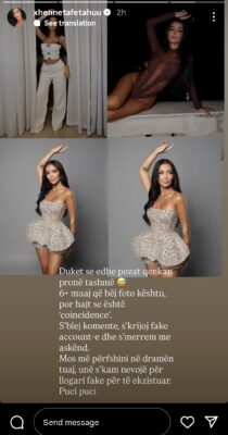 “S’blej komente, s’krijoj fake account-e dhe s’merrem me askënd. Mos më përfshini në dramën tuaj, unë s’kam nevojë për llogari fake për të ekzistuar. Puci puci.”