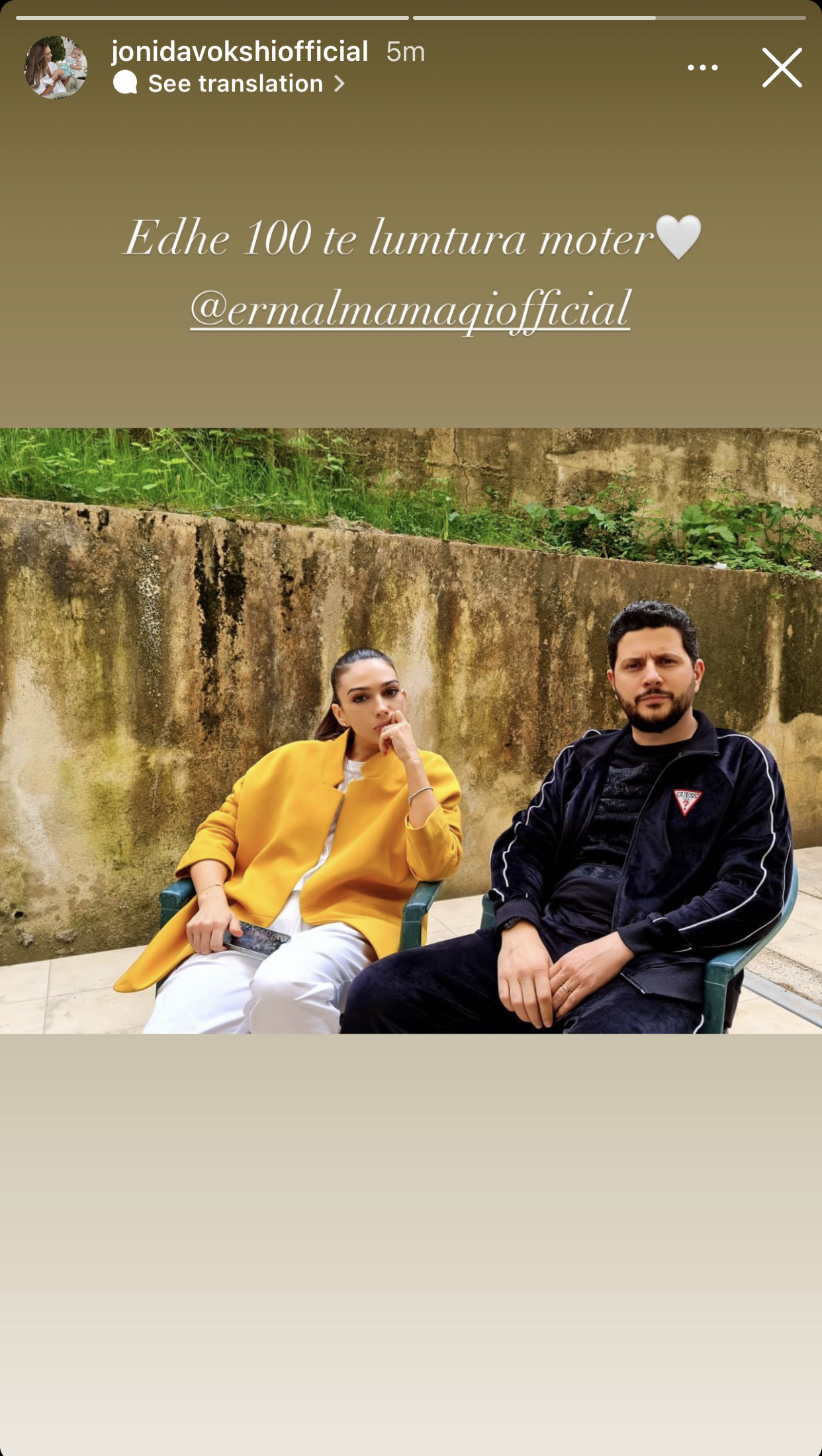 “Edhe 100 të lumtura motër”, ka shkruar Jonida Vokshi krah fotos me Mamaqin.
