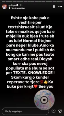 Në ditën e tij të lindjes, reperi nga Kosova, Getinjo, ka zgjedhur të mos flasë për festa apo dhurata, por për realitetin e muzikës shqiptare. Në një postim të sinqertë në rrjetet sociale, ai ka ndarë mendimet e tij për vështirësitë me të cilat përballen artistët që shkruajnë vetë tekstet e këngëve.