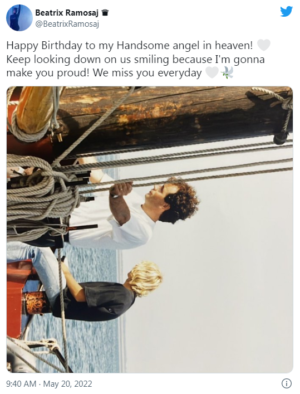 Beatrix është rikthyer sot në rrjete sociale pas një periudhe pushimi teksa ishte në vëmendje të mediave. Më saktë këngëtarja është bërë aktive në Twitter duke postuar një dedikim shumë të ndjerë. Data e sotme përkon me ditëlindjen e babait të këngëtares, i cili më shumë se 10 vite më parë ka ndërruar jetë. Beatrix çdo vit e uron ëngjëllin e saj dhe sot ka ndarë një foto të vjetër duke u shprehur se i mungon çdo ditë.
