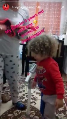 Gabrieli këtë herë ka shfaqur talentin a tij në muzikë. “Gabrieli 3 vjeçar një yll rroku”, -ka shkruar ajo në video.