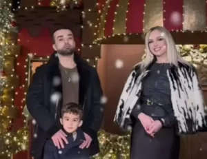 Në foto, Gaz Paja shfaqet së bashku me Irën dhe djalin e tyre, duke marrë pjesë në një set fotografik të veçantë për festat e fundvitit.