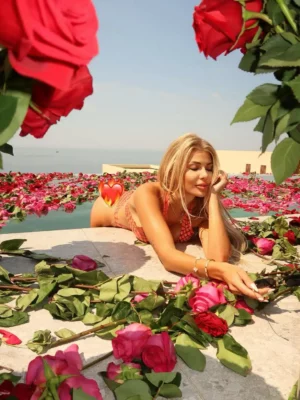 Moderatorja ndau me ndjekësit e saj një video, ku tregon ambientin e transformuar. Vila ishte e mbushur me buqeta të mëdha, ndërsa petale trëndafilash mbulonin dyshemenë, duke krijuar një atmosferë tejet romantike dhe festive. Vetë kompania që ka mundësuar realizimin e buqetave, ka postuar disa pamje në Instagram ku edhe zbulon numrin e pabesueshëm të trëndafilave të përdorur: plot 10,000!