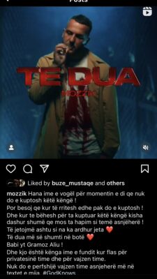 Në një postim në “Instagram”, Mozzik thotë se kjo është hera e fundit ku në një këngë përmend të bijën.