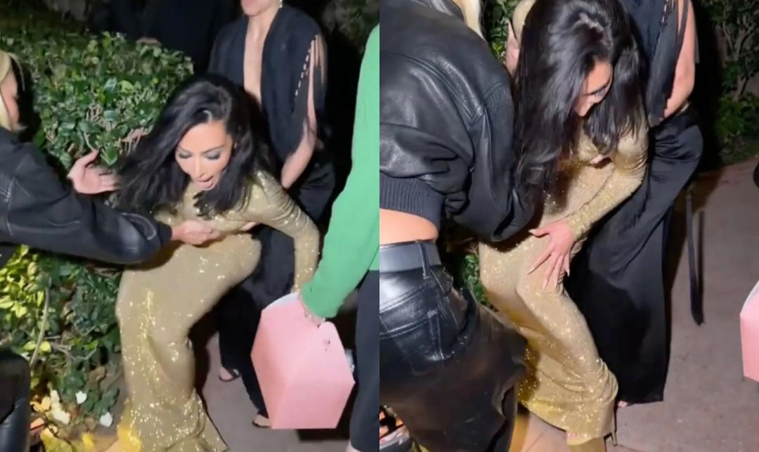 Në një natë ku gjithçka është e kuruar deri në detaj dhe çdo lëvizje peshohet me kujdes, një moment i papritur e rikthen realitetin e zakonshëmn mes të magjisë së Vanity Fair Oscars Party 2026. Kim Kardashian, e veshur me një fustan të artë që reflektonte dritën e kamerave në çdo hap, u gjend në një situatë të sikletshme ndërsa ecte drejt eventit, duke humbur për pak ekuilibrin në taka ekstreme 20 cm. Një çast që, në vend që të kalonte pa u vënë re, u kthye në një nga momentet më të komentuara të mbrëmjes.