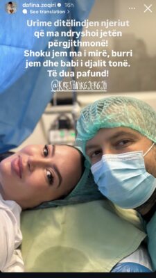 Në një fotografi të ndarë nga momenti i lindjes së djalit të tyre, çifti shfaqet në ambientet e maternitetit, të lumtur dhe të emocionuar teksa përjetojnë ardhjen në jetë të fëmijës së tyre të parë. Krahas imazhit të ndjerë, Dafina ka bërë një dedikim të veçantë, duke shprehur dashurinë dhe mirënjohjen për partnerin e saj.