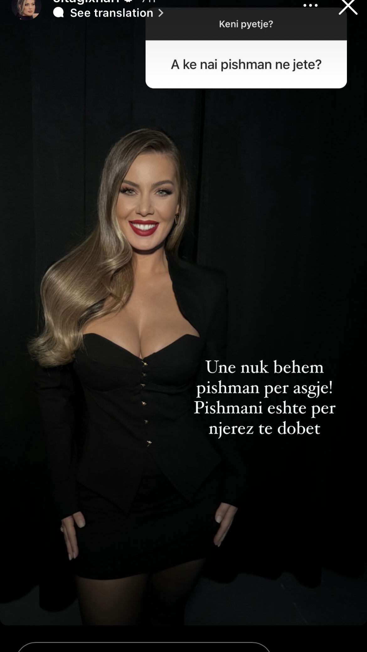 “Unë nuk bëhem pishman për asgjë. Pishmani është për njërëzit e dobët”, është përgjigjur aktorja.