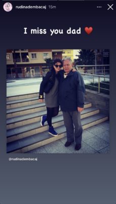 Herë pas here Rudina Dembacaj i kthehet kujtimeve të vjetra me babain e saj të ndjerë. Edhe pse në rrjetet sociale ka zgjedhur të ndajë gjithmonë vetëm momente gazmore, malli për të atin e ka trazuar shpeshherë. Dhe në të tilla momente ka ndarë gjithmonë një kujtim apo dedikim për të.