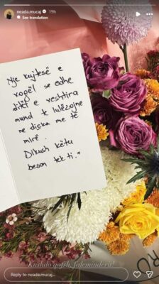 Neada ishte e para që reagoi. Në Instagram, ajo publikoi një foto me një buqetë lulesh dhe një kartolinë të bardhë nga një dërgues anonim. Në mesazh, i cili u interpretua si qëndrimi i saj i parë pas situatës, qëndronte shkrimi: