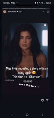 Ylli i “The Kardashians” ka shpërndarë sërish një këngë të reperes shqiptare në Instagram-in e saj. Vetë Tayna ndau me ndjekësit një postim ku tregoi se Kylie bëri repost të një Instastory me këngën e saj, duke shkruar se këtë herë ajo kishte zgjedhur “Obsesion”.