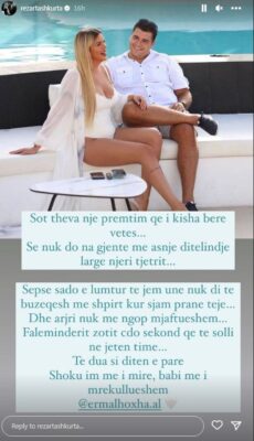 Ermal Hoxha ka patur ditëlindjen dhe në këtë ditë të veçantë Rezarta Shkurta ka treguar se për fat të keq ka thyer një premtim. Dhe një premtim goxha të bukur. Ajo i kishte premtuar bashkëshortit se asnjë ditëlindje nuk do i gjente më larg njëri-tjetrit, por së fundmi i është dashur të udhëtojë drejt Emirateve të Bashkuara Arabe, duke humbur kështu mundësinë të festojë pranë Ermalit.