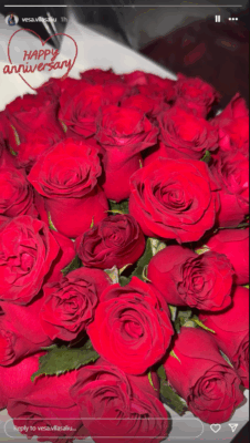 Në një tjetër Instastory, influencerja ka ndarë edhe një buqetë me trëndafila të kuq, e cila – sipas të gjitha gjasave – është dhurata romantike e Dakut për përvjetorin. Mbi foto, ajo ka shkruar thjesht: