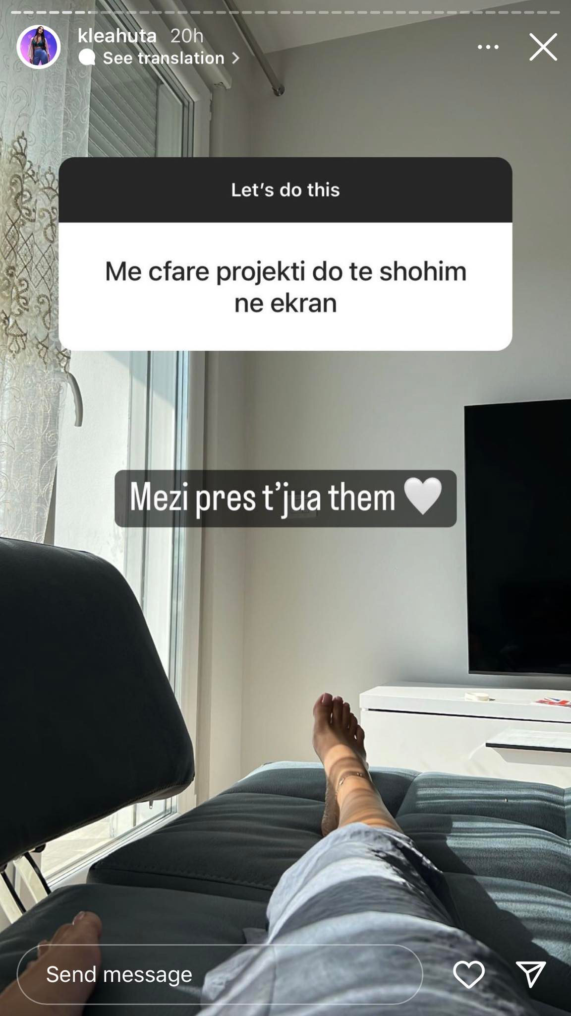 “Mezi pres t’jua them…”, shkruan Klea.