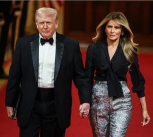 Një dalje zyrtare në Shtëpinë e Bardhë ka mjaftuar që Melania Trump të rikthehet në qendër të debatit publik. Gjatë darkës formale të guvernatorëve, ku shumica e të ftuarve u shfaqën me fustane të gjata mbrëmjeje dhe smoking klasik, Zonja e Parë zgjodhi një kombinim më modern: pantallona argjendi me shkëlqim, të shoqëruara me një bluzë të zezë elegante. Një zgjedhje që për disa ishte shenjë stili dhe vetëbesimi, ndërsa për të tjerë një devijim nga kodi tradicional i një eventi kaq formal.