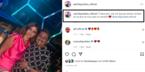 Krah një fotoje të tyre të publikuar në Instagram, Sabriu ia bën të ditur bashkëshortes se ata do të jenë bashkë në përjetësi.